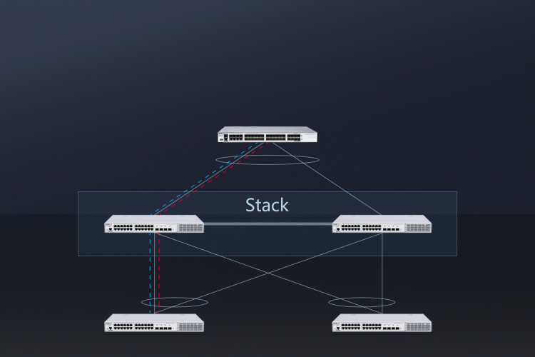 毫秒级故障恢复:VSU和外围设备通过聚合链路连接,如果其中一台设备或者一条成员链路出现故障,切换到另一条成员链路的时间只需要毫秒级。