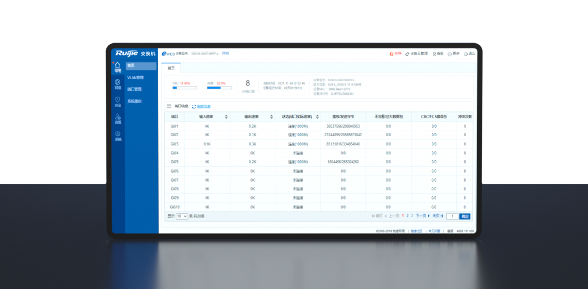 RG-S2910-L系列支持云管理,可以带给客户极简的运维管理和用户体验。