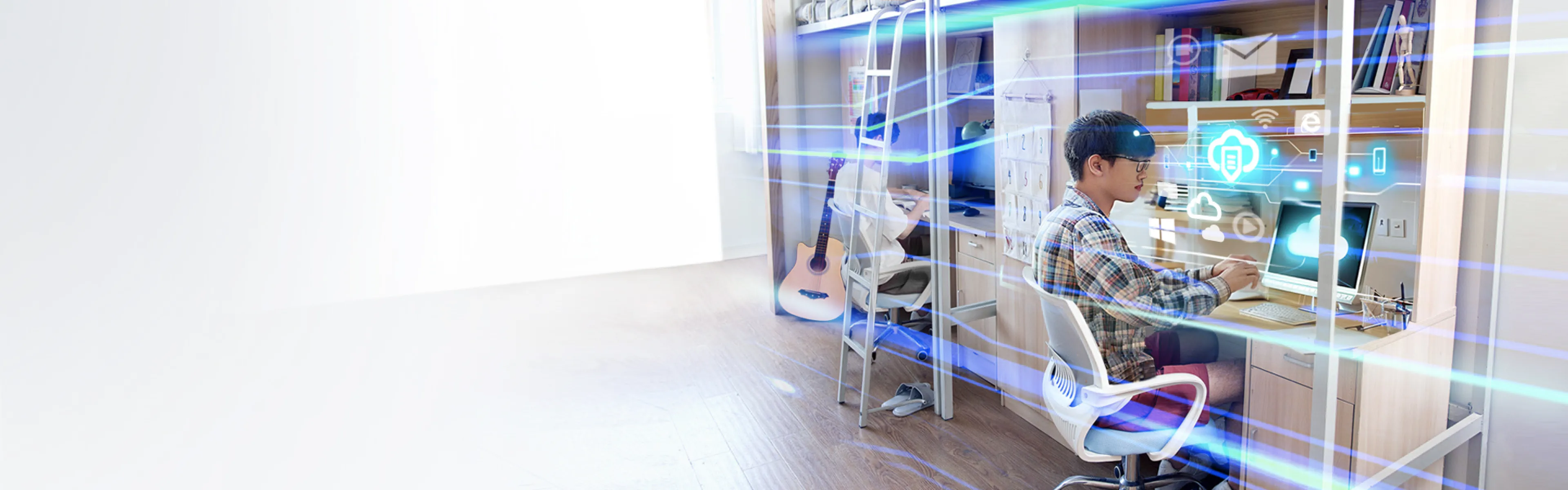 学生在宿舍、图书馆等非教室环境下使用个人实训桌面完成项目式实训或科研任务